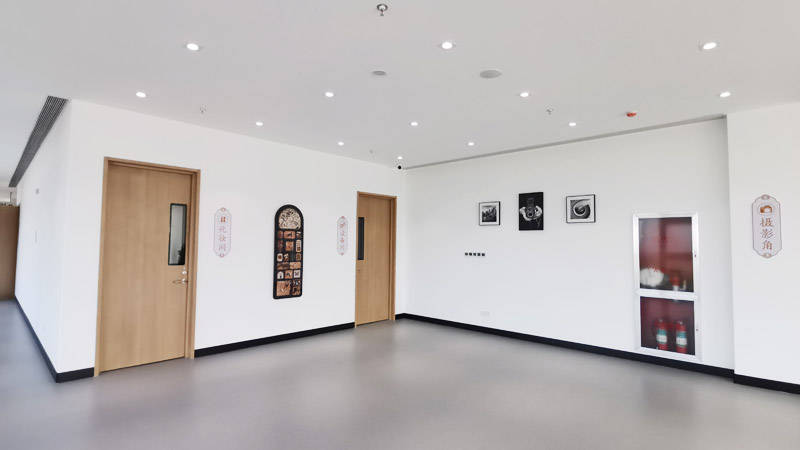 设施配置兼顾健康性、适老性与家庭感,全方位贴合长者需求。业内首创整体全新风PM2.5循环过滤系统,24小时除霾净化,杜绝异味与呼吸道健康隐患;配备LG静音地面、美标智能马桶、升降浴床、地暖等高端适老设施,保障居住舒适与安全。房型涵盖单人间、双人间、家庭套间等,家庭套间适配“两老一残”家庭;电梯直达700平米屋顶生态花园,长者可参与设计管理,轮椅友好设计让长者近距离亲近自然。室内配套棋牌、书画、放映厅等空间,满足日常文娱需求。